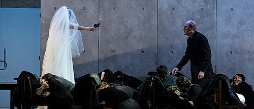 Die Handlung, durchaus realistisch in einer mit allen zeremoniellen Ingredienzen bestückten Trauerhalle ausgeführt, kleidet Raphaël Pichon hauptsächlich mit Arien, Chören und Tanzsätzen aus Kompositionen des englischen Barock-Meisters Henry Purcell aus. Und das mit viel Geschick für die nötigen Stimmungen der Situationen und Gefühle der Figuren. Das alles wirkt trotz der collagenartigen Anlage erstaunlich schlüssig. Gespielt wird eindringlich, aber ohne effektheischende Übertreibungen.