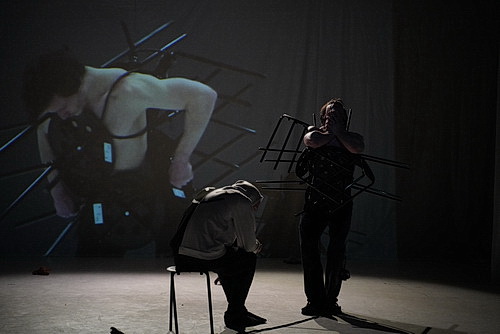 Die Choreo­grafin, die auch für die Ausstattung verant­wortlich zeichnet, bringt ein höchst komplexes Werk auf die Bühne im oberen Saal der Tanzfaktur. Und mit allem Wohlwollen gegenüber der Tanzfaktur und dem Kopro­du­zenten Theater im Keller gehört dieses Stück eigentlich auf die große Bühne im Tanzhaus NRW. Aber von dort ist ja schon seit langer Zeit außer Gender-Ideologien nichts mehr zu hören. Also flutet Jiménez die Bühne in Köln mit raumfül­lenden Projek­tionen von Jens Standke, der die verschie­denen Ebenen, die aus realen Spiel­szenen, Szenen aus Inter­net­spielen und allerlei anderen Einfällen bestehen, entwi­ckelt. Dieser Bilderflut, in der sich die Tänzer bewegen, kann sich niemand entziehen.