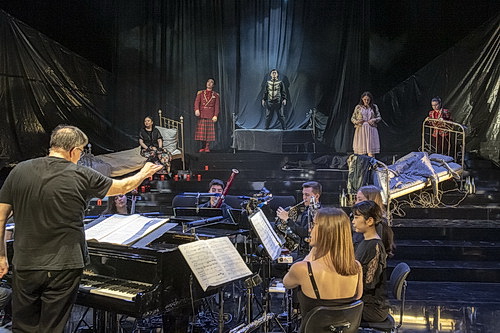 Dabei sind die Studenten ja zum Äußersten entschlossen. Man muss schon wissen, dass es Lernende sind, die hier den Abend gestalten. Tatsächlich gibt es die Kleinigkeiten, die sie zu den Profis unterscheiden. Hier herrschen Unbefangenheit und Tatendrang vor. Der Held des Abends ist, wenn auch mit knappem Abstand, der Tenor Taejun Sun, der als Erzähler auftritt. Fein nuanciert in der Stimme und mit schauspielerischem Talent, aber auch mimisch deutlich, treibt er die Handlung voran. Stets großartig sekundiert von Sopranistin Anna Graf, die sich zudem noch sehr empathisch zeigt. Maximilian Haschemi geht mit der undankbaren Rolle des Collantinus souverän um und überzeugt mit einem angenehm klingenden Bass, den man künftig auch gern in anderen Rollen hören möchte. Tarquinius wird sehr überzeugend vom Bariton Daegyun Jeong gegeben. Bei ihm verschmelzen Gesang und Rolle zu einer Einheit. Sandra Gerlach übernimmt die Lucretia. Es ist keine Lucia di Lammermoor, aber im Rahmen der Rolle überzeugt auch die Mezzosopranistin, die hier gelungen das Altistinnen-Fach übernimmt. Benjamin Hewat-Craw zeigt einen martialischen Junius, der als Bariton gefällt. Auch Tong Zhang als Bianca und Rosha Fitzhowle bringen sich adäquat in das Geschehen ein.
