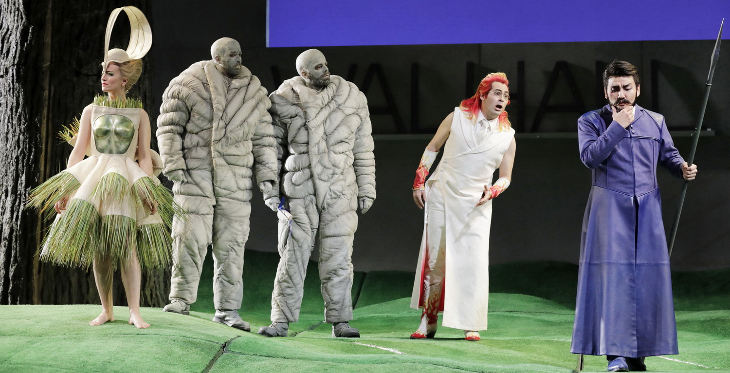 Bis auf Donner und Froh tauchen alle Figuren des Stücks auf, Erda bleibt als „Stimme der Natur“ unsichtbar. Das junge, teilweise aus dem Opernstudio stammende Ensemble, spielt seine Rollen mit großem Einsatz. Und dazu gibt das Rheingold, zumal in einer so konzentrierten Version, reichlich Gelegenheit. Schwieriger dürfte es mit der handlungsärmeren Walküre im nächsten Jahr werden. Doch in diesem Jahr darf man an den stimmlich durchweg sehr ordentlich agierenden Solisten wie Insik Choi als Wotan, Hoeup Choi als stimmmächtigen Alberich, Dino Lüthy als schillernden, pointiert artikulierenden Loge oder der jugendlich frisch singenden Freia von Maria Isabel Segarra erfreuen. Nicht zu vergessen das Riesenpaar mit Miroslav Stricevic und Lucas Singer, die Fricka von Judith Thielsen und alle anderen.