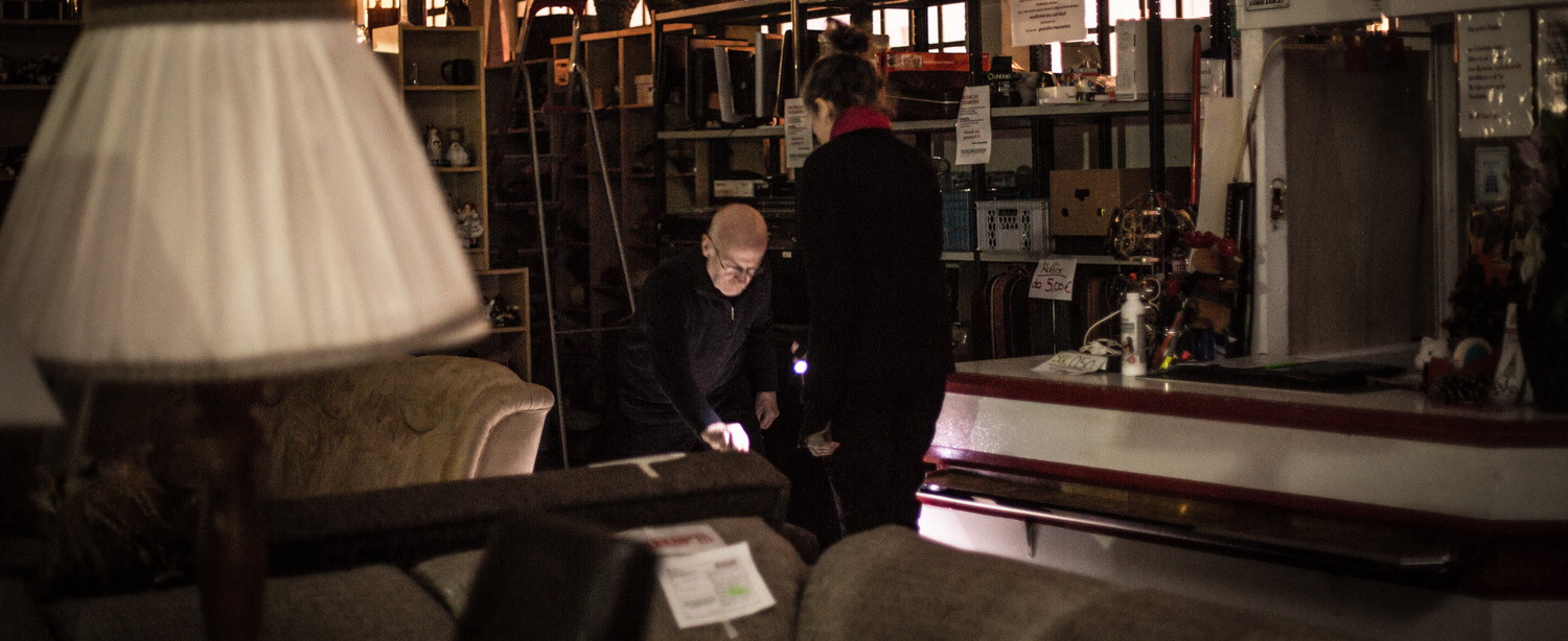 Köln-Neuehrenfeld. Irgendwo in der Nähe der Äußeren Kanalstraße. Es ist ein regnerischer, trüber Novemberabend. Eine alte Fabrikhalle ist das „Basislager“ des Vereins Bürger für Obdachlose. Ein Kaufhaus, in dem Waren aus zweiter Hand zu Niedrigpreisen angeboten werden. Beschäftigt sind hier tagsüber für den so genannten ersten Arbeitsmarkt schwer vermittelbare Arbeitskräfte. Jetzt ist keiner von denen da. Weder Anbieter noch Abnehmer. Es gibt kaum etwas Tristeres als ein Kaufhaus außerhalb der Öffnungszeiten. Die ganze Sinnlosigkeit einer überbordenden Warenwelt ist sorgsam angeordnet. Polstergruppen im Zentrum des Erdgeschosses, zu beiden Seiten Regale, angefüllt mit Büchern, Spielwaren, Haushaltsgeräten. Zwei Heimorgeln zu 100 und 260 Euro stehen da. Warum sind die nicht längst verkauft? Textilien im Untergeschoss. Auf den „Aktionsflächen“ gibt’s jetzt Weihnachtsartikel. Damit hier alles möglichst echt aussieht, so wie in der „ersten Welt“. Es gibt sie längst, die andere Welt in Deutschland. Bei aller wohlfeilen Absicht des Basislagers, die hier unbestritten sein soll: Dass sich diese andere Welt auch gleich wieder im System einrichtet, stimmt nachdenklich.