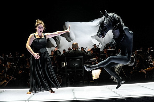 Die Kölner Oper hat in den letzten zehn Jahren gelernt, mit den Gegebenheiten des Staatenhauses mehr oder weniger geschickt umzugehen. Bei Berlioz‘ sperrigen Trojanern, die man ungekürzt in fünfstündiger Vollständigkeit zeigt, vertraut man voll der Kompetenz und Zugkraft von François-Xavier Roth, dem maßgeblich zu danken ist, dass die Kölner Oper ihre überregionale Bedeutung wahren konnte. Umso bedauerlicherweise, dass er in drei Jahren ans SWR-Symphonieorchester wechseln wird, als Nachfolger des in Ungnade gefallenen Putin-Vasallen Teodor Currentzis.