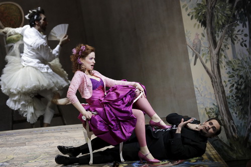 Die detail­lierte Formung der Figuren durch die Regis­seurin bietet den jungen Sängern beste Voraus­set­zungen, um sowohl ihre jugend­liche Spiel­freude ausleben zu können und sich gleich­zeitig von der Hand einer erfah­renen Regis­seurin leiten zu lassen. Und zu hören sind dabei einige Stimmen, denen man durchaus eine hoffnungs­volle Zukunft versprechen kann. Dazu gehört Maria Kublashvili als Contessa Armelinda, die bereits über eine ebenso große und geschmeidige Stimme verfügt wie über ein beacht­liches Charisma. Und die Talent­schmiede aus dem Fernen Osten zahlt sich auch hier aus mit dem Bariton Hoeup Choi und dem mit strah­lendem Glanz überzeu­genden Tenor Young Woo Kim. Aber auch die Sopra­nistin María Isabel Segarra, die Mezzo­so­pra­nistin Sara Jo Benoot und der Tenor Dino Lüthy lassen aufhorchen, während Yunus Schahinger als der intri­gante Vogel­fänger Pierotto stimmlich noch nicht gefestigt wirkt.