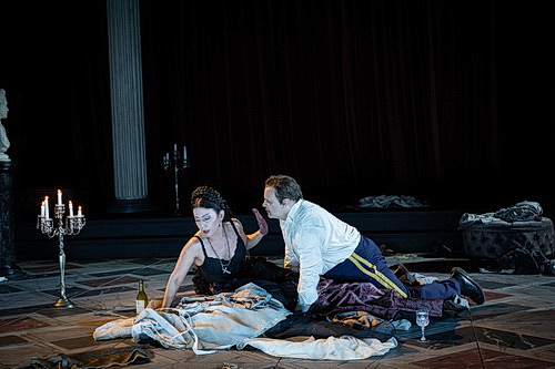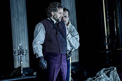 Dem drama­ti­schen Sopran Khana­miryans fehlt es an Melos und Phrasie­rungs­nu­ancen. Ihr Spiel ist eindrucks­voller als ihr Gesang, was sich auch auf die Ulrica der Smimmero übertragen lässt. Ihr Mezzo ist markant und auch schrecklich-schön, aber nicht in der Weise gespens­tisch, wie Verdi die von ihm geschätzten Rollen alla cingara auszu­statten pflegt. Es ist schon bezeichnend, dass die Verschwörer die vokale Archi­tektur des zweiten Akts retten, der „eigentlich“, von der Partitur her, in dem berau­schenden Duett Amelia! Tu, m’ami … Riccardos mit Amalia seinen Höhepunkt findet. Christoph Seidl als Samuel und William Socolof als Tom erledigen die Sache der Verschwörer im Übrigen ganz ausgezeichnet.
