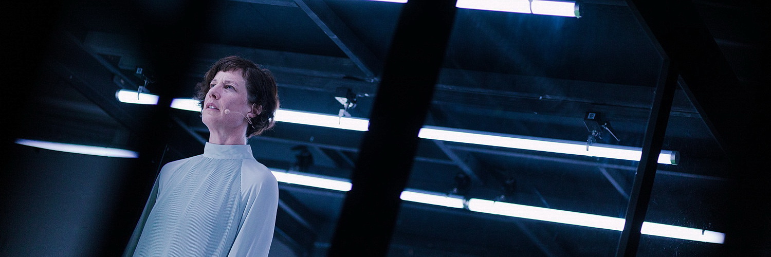 Regisseur Christian Grammel übernimmt die Erzählung der Geschichte von Wenn ich mich richtig erinnere. Die geht von den Vorfahren in einem spanischen Landstrich, die mit ihren Ziegen in Richtung Barcelona ziehen, über die Jugend der Großmutter hin zu fehlenden Antworten von Großmutter und Vater über ihr Leben. Dazwischen blitzen Weltereignisse genauso wie persönliche Lebenserfahrungen der Enkelin auf. Grammel überträgt das beträchtliche Textvolumen an Sabine Wolf, die sich damit redlich abmüht. Jan Patrick Brandt schafft für sie das Umfeld, in dem sie sich raumfüllend bewegt. In der Mitte der Bühne hat er einen Glaskubus aufgebaut, in dem, ebenso wie in seiner Umgebung, Felssteine liegen. Das sind die Brocken, die sich in der Geschichte nicht auflösen lassen. Da die Bühne in der Halle der Alten Feuerwache in Köln mittig angeordnet ist, haben rechts und links zwei Zuschauertribünen Platz. Außerdem sind auf der Bühne verschiedene Musikstationen angeordnet, die zugleich als Anspielstationen der Musiker dienen. Das Kostüm, in das Brandt Wolf kleidet, ein türkisfarbener Hänger mit gelben Leggins, ist wohl eher Geschmackssache.