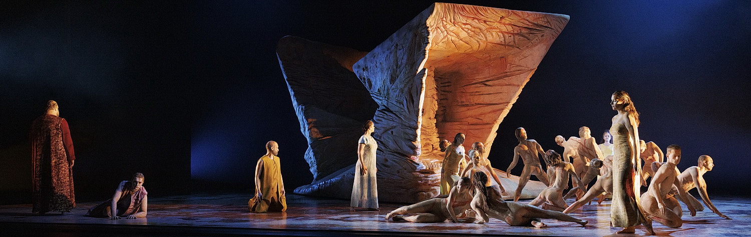 Es sind Tänzer des Skånes Dansteater, die in der Umsetzung von Melos Choreografie in ihrer Sprache, der Körpersprache, das Drama und die Gefühle der Protagonisten darstellen, auch kommentieren, manchmal bis zum Zustand der Entmaterialisierung steigern. Wie von Geisterhand gesteuert, nähern sie sich in der einen Situation den Sängerdarstellern, um von ihnen in der nächsten wieder zu lassen. Mythische Gestalten im Kleinasien einige Jahrzehnte vor der christlichen Zeitrechnung, die sich in der Macht der Götterwelt wissen, mal umklammernd, dann Raum gebend, wenn auch nur für kurze Zeit. Ein fast schon surrealer Effekt entsteht, als einige der Tänzer auf einer Schräge innerhalb der Skulptur in Zeitlupengeschwindigkeit dem Boden entgegen rutschen. Die Simulation einer Geburt? Oder des Todes, ausgespien nach einem Ringen mit unbekannten Mächten?