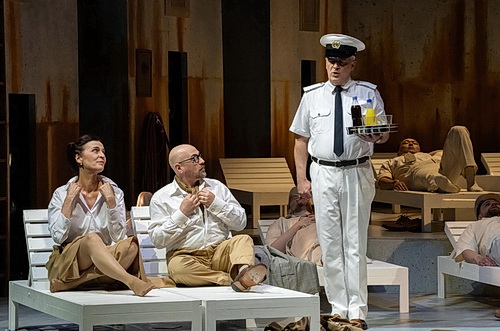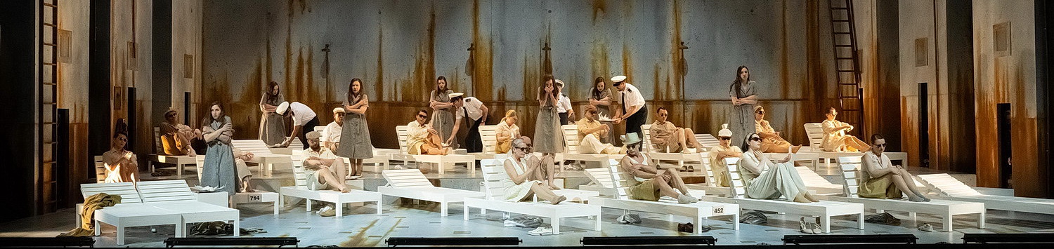 Für die Inszenierung in Krefeld wurde die 70-jährige, israelische Regisseurin Dedi Baron verpflichtet. Wer nun erwartet, mit der Abrechnung einer alten, verbitterten Jüdin mit dem Holocaust konfrontiert zu werden, wird rasch eines Besseren belehrt. Fast möchte man sagen: Das Gegenteil ist der Fall. Denn Baron entschließt sich, auf die Gegenüberstellung der Situation auf dem Luxusdampfer mit der des KZ zu verzichten – und damit auch auf die scharfe, effektversprechende Abgrenzung. Stattdessen lässt sie die Bilder verwischen, was sehr viel „hübscher“ daherkommt, aber auch dem Zuschauer die Zuordnung erschwert. So wirkt vor allem der erste Akt auf den nicht mit dem Libretto vertrauten Besucher eher eindimensional, in der Pause hört man gar Stimmen, die mit der scheinbaren „Relativierung“ der KZ-Szenen wenig anfangen können.