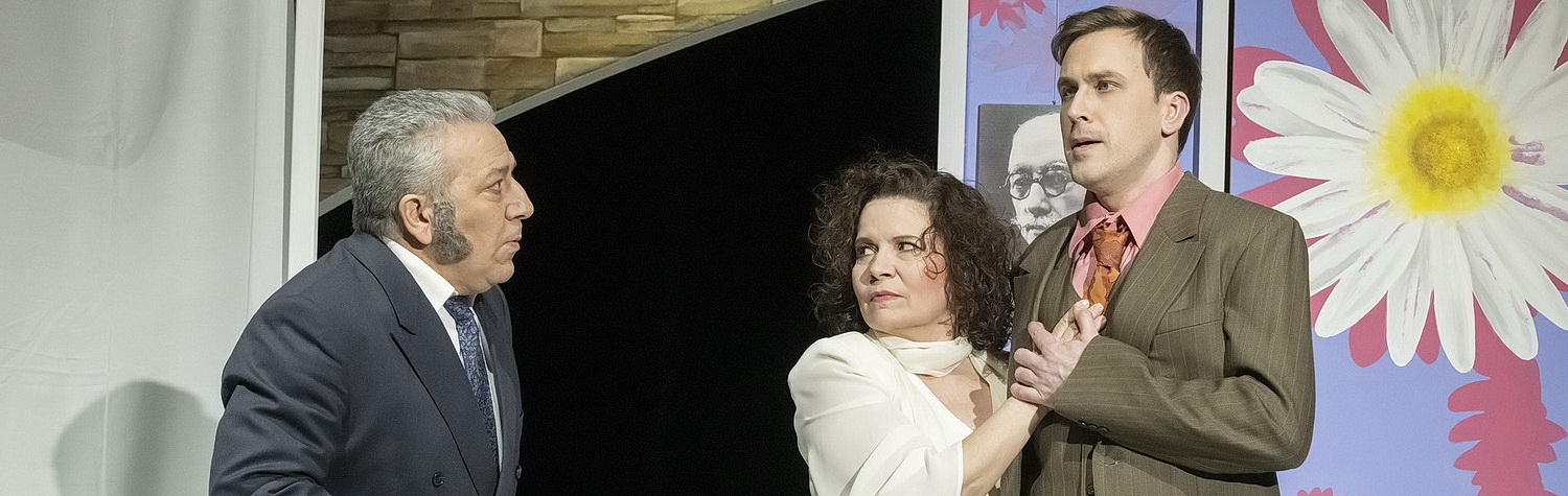 Das Theater Krefeld Mönchen­gladbach hat jetzt eine dieser Komödien wieder ausge­graben. Passi­onnément – Verrückt nach Liebe ist eine Comèdie musicale in drei Akten, die von Maurice Hennequin und Albert Willernetz 1926 geschrieben und von André Messager mit Musik versehen wurde. Ulrich Proschka hat sie ins Deutsche übertragen und für das Krefelder Theater insze­niert. Der ameri­ka­nische Millionär William Stevenson reist mit seiner Ehefrau Ketty, dem Dienst­mädchen Julia und dem Kapitän Harris auf seiner Jacht Arabella von Amerika nach Frank­reich, um dem Franzosen Robert Perceval ein Stück Land in Colorado abzukaufen. Der eifer­süchtige Stevenson verlangt von seiner Frau, dass sie in Frank­reich eine weißhaarige Perücke und eine blaue Brille trägt, um sie vor den eroti­schen Nachstel­lungen der Franzosen zu schützen. Julia und den Kapitän kann Stevenson nicht leiden.