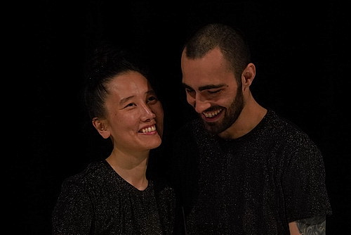 Es funkte recht schnell zwischen Zhang und Strathmann. Schon im Studium erprobten sie ihre Zusammenarbeit. Das funktionierte wirklich gut, und so gründeten sie gleich nach dem Abschluss 2019 Yibu Dance. Sich möglicherweise erst noch bei anderen Compagnien auszuprobieren, stand für die beiden Choreografen nicht zur Debatte. Und bereut haben es die beiden ohnehin nicht. „Weil das eigentlich von Anfang an so gut funktioniert hat, und wir beide uns wohlgefühlt haben“, erinnert Strathmann sich. Nach den beiden erfolgreichen Abschlussproduktionen an der Hochschule steht nun also endlich die erste „öffentliche“ Produktion an. Und die Ansprüche sind hoch. Schon der Titel des Stücks ist erklärungsbedürftig. Whirling Ladder | Between bedeutet im Deutschen so viel wie Wirbelnde Leiter | dazwischen. „Es ist eine sehr minimalistische Arbeit. Es geht um die Beziehung zwischen zwei Menschen. Und die Mikrowelt. Unser Körper ist eine Makrowelt im Vergleich im Vergleich zur DNA. Diese kleine Bewegung in uns“, erklärt Zhang ihren Ansatz. Für die Choreografen ist die Herangehensweise wichtig. Jemanden von rechts nach links zu schicken, um so etwas wie eine Handlung zu erzeugen, interessiert die beiden nicht. „Und deswegen sind wir wirklich zu Essenz und Bewegungskomposition zurückgegangen. Nicht zu sagen, oh, wir haben Erfahrung und das kann gut funktionieren. Sondern wir haben wirklich versucht, pur auf Bewegungskomposition aufzubauen, und alles was in Raum und Zeit mit uns passiert, passiert durch Komposition und nicht durch: Ich könnte mir vorstellen, da kommt jetzt so und so“, sagt Strathmann. Und dann zeigen die beiden auch gleich, was sie meinen.
