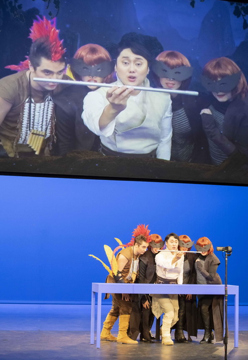 Wer in der irrtümlichen Annahme gekommen ist, die Zauberflöte zu sehen, geht in der Pause. Die anderen wollen ihren Spaß und nehmen dafür die akustischen Mängel in Kauf. Texte sind nur in Ausnahmefällen zu verstehen, und die Stereotypien nehmen immer wieder mal überhand. Davon abgesehen, hat das Theater Krefeld Mönchengladbach eine Vielzahl an wirklich ausnehmend guten Sänger-Darstellern aufzubieten. Zusätzlich eingeladen hat Operndirektor Andreas Wendholz als Königin der Nacht Judith Spiesser. Eine Glanztat. Ihre Koloraturen kommen messerscharf und glasklar. So wird aus dem Arien-Schlager ein Knüller. Besondere Meriten verdient sich auch Matthias Wippich als Sarastro, eine Rolle, die man so gesanglich überzeugend selten hört. Um den Schauspieler-Text zu deklamieren, braucht es besondere Anstrengung, aber Wippich überwindet auch diese Hürde. Tamino wird von van Rensburg arg blass angelegt, aber das ficht Woongyi Lee nicht an. Der Opernstudio-Teilnehmer präsentiert sich angemessen.