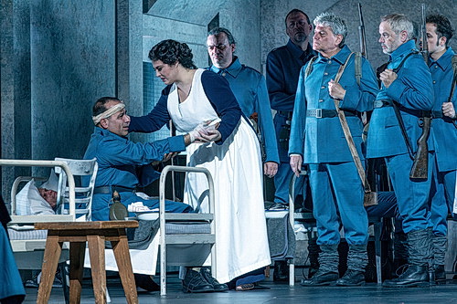 Kathrin Görings wunderbarer Mezzosopran in der Rolle der getäuschten Adalgisa verbindet sich mit Mantegnas Sopran zu harmonischen Klanggedicht-Duetten von Leben und Tod, von Glück und Enttäuschung. Görings Mezzosopran klangmalt Leidenschaft, Wut und Traurigkeit. Adalgisa, vom Libretto als Novizin referenziert, charakterisiert Göring als eine Frau voller Empathie, die beim Zuschauer umstandslos Sympathie auslöst. Selbst dann noch, wenn Dominick Chenes als der blonde Latin Lover Pollione glaubt, alle schillernd verführerischen Tenor-Trümpfe in seiner Hand zu haben, hält Görings Mezzosopran den Ton und ihren Kopf hoch.