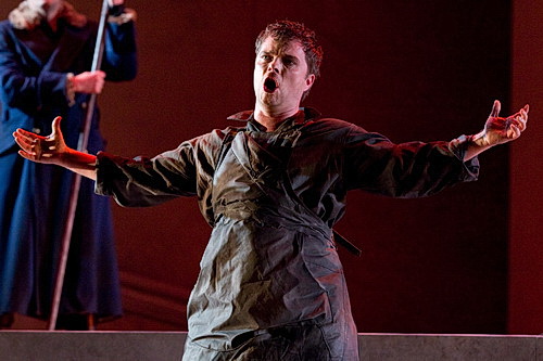Das gesamte Ensemble übernimmt den Erzählstil Gilmores und bewegt sich mit großer Spiel­freude und Inten­sität. Und musika­lisch offenbart der Abend ganz starke Momente. Allen voran Michael Volle in der Rolle des Wotan. Er war der überra­gende Hans Sachs in der genialen Bayreuther Meister­singer-Insze­nierung von Barrie Kosky, und er ist jetzt der überra­gende Wotan. Mit kraft­vollem Helden-Bariton und aggres­sivem Spiel dominiert er die Aufführung, und er reiht sich ein in die Riege der ganz Großen, die der Partie ihren Stempel aufge­drückt haben. Ein begeis­ternder Auftritt, der am Schluss vom Publikum zu Recht bejubelt wird. Man darf sich schon jetzt auf den Siegfried freuen, wenn Volle als Wanderer wieder auf der Bühne stehen wird. Der zweite Ausnah­me­sänger ist Thomas Mohr als Loge. In den zurück­lie­genden Jahren hat er in dieser Ring-Produktion auch beide Siegfried-Rollen überragend gestaltet, und mit seinem in dieser Partie etwas zurück­ge­nom­menen Helden­tenor und seiner sprühenden Spiel­freude ist er sänge­risch und spiele­risch ein weiterer Haupt­akteur der Aufführung und hat mit seiner musika­li­schen Inter­pre­tation der Figur Maßstäbe gesetzt. Ein überra­gendes Hausdebüt feiert Werner van Mechelen als Alberich. Sein markanter Bass-Bariton ist geprägt von Durch­schlags­kraft und sehr textver­ständ­licher Dekla­mation. Sein Fluch zu Beginn des vierten Bildes, tief durch­dringend, ist einer der musika­li­schen Höhepunkte des Abends. Sein Spiel, zunächst komödi­an­tisch hinter den Rhein­töchtern gierend, dann abgrundtief böse als Nibelun­gen­fürst, zeigt alle schau­spie­le­ri­schen Facetten, die die Rolle fordert. Auch Dan Karlström als Mime überzeugt einmal mehr als Charak­ter­tenor mit dynami­schem Spiel.