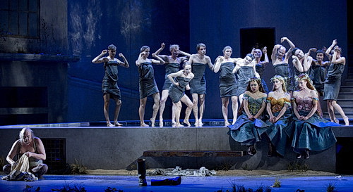 Die Götter werden in ihrer Erzählung als blasierte, marode Gesell­schaft darge­stellt, hinter deren mythi­scher Fassade mensch­liche Eigen­schaften zum Vorschein kommen: Liebe und Hass,    Neid, Gier und Macht­hunger. So erinnert Wotans erster Auftritt eher an einen römischen Imperator, der sich selbst­ver­liebt und eitel in seinem Glanze sonnt, während seine Gemahlin als Grande Dame auftritt und unwill­kürlich Assozia­tionen an Cosima Wagner hervorruft. Freia ist ein naives Püppchen, Froh und Donner sind arrogant wirkende Neben­fi­guren, die nicht wirklich ins Geschehen eingreifen können. Ganz anders Loge, der Strip­pen­zieher, der mit intri­gantem Spiel das Heft des Handelns in der Hand hält und der Außen­seiter ist, von den Göttern mehr geduldet als akzep­tiert. Wotan aber verwandelt sich im Laufe des Geschehens, er spürt um seine wankende Macht. Genial ist die Erda-Szene. Erda erscheint mit den seilspin­nenden Nornen, die schon auf die bevor­ste­hende Götter­däm­merung hinweisen. Auch auf der anderen mythi­schen Ebene gibt es bunte Kontraste. So geizen die Rhein­töchter nicht mit ihren optischen Reizen und bringen Alberich, den lüsternen und notgeilen Chef der Nibelungen mit lasziven Gesten fast um den Verstand. Seine Entsagung der Liebe und der Raub des Goldes verwandelt die Komödie in ein Drama, an dessen Ende der Untergang der Götter und die Hoffnung auf eine neue Welt stehen. Rosamund Gilmore schafft es in diesen knapp zweieinhalb Stunden, die Geschichte spannend und intensiv zu erzählen, ohne drama­tur­gische Brüche und ohne beleh­renden Zeige­finger, und dabei ganz dicht am Werk.