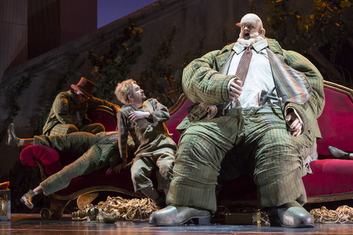 Siegfried zerschlägt Wotans Speer, dessen Macht ist endgültig gebrochen, und für den jungen Siegfried gibt es auf dem Weg zu seiner ersten weiblichen Eroberung kein Zurück mehr. Brünnhildes Erwachen ist mehr Geburt der Venus, ein erotisches Verlangen, dass den pubertierenden Knaben ganz schön überfordert. Das ist alles noch akzeptabel, weil auch schön anzuschauen. Doch da war ja noch was. Die mythischen Wesen, die freundlichen Begleiter Siegfrieds in seinen jungen Jahren, dürfen am Schluss nicht fehlen. Und mitten im taumelnden Jubel um leuchtende Liebe und lachenden Tod sind sie da, freuen sich mit Siegfried und Brünnhilde und rauben dem Zuschauer die Illusion von wahrer Liebe. Oberle hat sich mit seinem Bühnenbild genau dieser Regieordnung gefügt. Im ersten Aufzug dominiert das merkwürdige Gartenfeld, und einige wenige Requisiten wie Amboss und diverse Schwerter erinnern den Zuschauer daran, dass er sich in der Ring-Tetralogie befindet. Riesentroll Fafner sitzt auf einem riesigen, roten Sofa, das in die Tiefe absenkbar ist, während die umgestürzte Brücke an der Neidhöhle dem Rheingold entstammt. Grandios das Bild im dritten Aufzug mit einer erneut formidablen Lichtregie von Röger. Der dunkle Walküren-Felsen von hinten, mit Nebel überzogen, und nach der Drehung das stilisierte Schlussbild aus der Walküre mit der schlafenden Brünnhilde. Hier wird das Geschehen wieder zum Märchen für träumende Erwachsene. Reichert unterstützt das mit ihren Kostümen, die ihr dann am besten gelingen, wenn es um die Fantasie geht, insbesondere bei Fafner und bei Brünnhilde. Siegfried in seiner hochwassertauglichen Latzhose ist kein großer Wurf. Mimes Arbeitskleidung entstammt irgendeiner Fabrik, passt aber zu seinem kleingeistigen Habitus. Alberich mit Trenchcoat und Brille sieht aus wie ein Ministerialbeamter und der Wanderer mehr wie ein Fischer auf Landgang.
