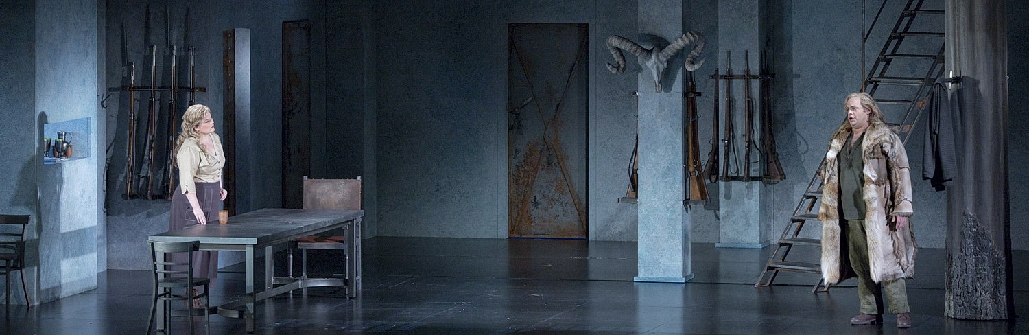 Wie schon im Rheingold inszeniert Rosamund Gilmore den ersten Abend der Tetralogie, und sie setzt ihr erfolgreiches Konzept fort und erzählt die Walküre in zwei Handlungsebenen, die psychologisch eng miteinander verflochten sind. War ihr Rheingold der Übergangsmoment vom archaischen, zeitlosen Mythos in die Geschichte zu dem Zeitpunkt, in dem die Hoffnung auf die Zukunft gerichtet ist, so wird schon in der Walküre deutlich, dass das Ende der Götter bevorsteht. Es ist nach dem Drama der Lieblosigkeit, des Neides und der Gier im Rheingold das Drama der Liebe und der psychologischen Beziehungsgeflechte. Da ist der Vater-Tochter-Konflikt zwischen Wotan und Brünnhilde, der Ehezwist zwischen Wotan und Fricka, der letztendlich zum Tode seines Sohnes Siegmunds führen wird, und natürlich die stürmische inzestuöse Geschwisterliebe zwischen Siegmund und Sieglinde. Diese drei Beziehungen sind miteinander verwoben und verflochten und bedingen die zutiefst menschlichen Agitationen in der Walküre. Zentralfigur ist Wotan, der nach dem Konflikt mit seiner Gattin Fricka, den er verliert, resignierend auf das Ende wartet. Da ist kein blasierter Stolz mehr wie noch im Rheingold, sondern reine Verzweiflung. Nicht nur, dass er seinen Sohn Siegmund opfern muss, er verliert auch seine Lieblingstochter Brünnhilde, weil er ein Gefangener seiner eigenen Verträge und Anordnungen ist. Und aus dieser Erkenntnis: „… Ich, der unfreieste Aller“ entsteht eine Wut in Wotan, die an Selbstzerstörung grenzt und auch vor seiner Tochter Brünnhilde nicht Halt macht. Wotan tobt und brüllt, sein letztes Wort zu Hunding: „Geh!“ ist von derartiger Intensität, dass nicht nur der bärenstarke Hunding tot umfällt, auch im Zuschauerraum wird es ganz still. Diese Aura springt auf das Publikum über. Und wenn Brünnhilde zaghaft versucht, ihn daran zu erinnern, dass er einst für Siegmund das Schwert in den Eschenstamm gerammt hatte, dann schleudert Wotan ihr in unbändiger Wut im höchsten fortissimo zurück: „… und das ich ihm in Stücke schlug!“ Thomas J. Mayer gestaltet die Partie des Wotan in einer derartigen Intensität, dass man fast Angst bekommt. Einen derart rasenden Wotan sieht man ganz selten auf der Bühne, und zwar ohne Einbußen der stimmlichen und gesanglichen Qualitäten. Und so muss der große Höhepunkt des Werkes, Wotans Abschied von Brünnhilde, anders aussehen als bei der Premiere damals vor knapp neun Jahren. Der Premieren-Wotan des Markus Marquardt war gebrochen, voller Schmerz und Selbstmitleid. Im Abschied von Brünnhilde zeigte sich dieser ganze Schmerz in einer einzigen Geste. Brünnhilde versuchte, Wotan zu umarmen, doch er konnte diese letzte, innige Berührung nicht zulassen, und lehnte dann doch sein Haupt an ihr Gesicht. Dieser stille Moment des Innehaltens, damals auch großartig begleitet vom Gewandhausorchester, war der größte und emotionalste Moment in einer bis dato spannenden und abwechslungsreichen Geschichte. Doch Meyer, dessen wütende und zornige Wotan-Darstellung auch durch die emotionale Gestik und durch den fast schon lyrisch schönen Gesang von Allison Oakes als Brünnhilde etwas besänftigt wird, drückt sie ganz fest an sich. Für einen Moment glaubt man, er wird sie nie wieder loslassen und die Strafe zurücknehmen. Wenn er „die Gottheit von ihr küsst“, dann ist das einer der stärksten Momente der Aufführung mit ganz viel Gänsehaut. Doch dann kommt der Grimm wieder in ihm durch, und herrisch weist er seine Lieblingstochter an, sich auf den Felsen zu legen, damit Loge den Feuerzauber entfachen kann. Dieselbe Inszenierung, zwei völlig unterschiedliche Darstellungen des Wotan und des Beziehungsdramas zu seiner Tochter, und beides funktioniert! Das ist das schöne bei Wagner, dass man vor allem in der Personenregie oder der frei gewählten Interpretation des Darstellers immer wieder neue Facetten entdeckt.
