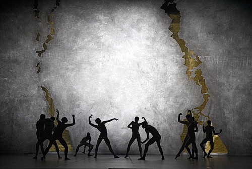 Gegen die Stärke der Geschichte und der Bilder von Lee kommt das Stück Kintsukuroi von Wubjke Kuindersma nicht an. Was als Poesie in Gold gefasst wird, verzichtet in Leverkusen auf den Hintergrund-Vorhang aus Dortmund aus. So werden klarere Strukturen geschaffen, vor denen die Tänzer in spröden Kostümen und mit goldgefärbten Gesichtern daran erinnern, dass chinesische Tontöpfer zerborstene Gefäße nicht mit Ton reparierten, sondern Gold in die Brüche einfügten, um so der Vergänglichkeit entgegenzuwirken. Carlo Carri wechselt das Licht in den Grundfarben weiß und rot, lässt genügend Helligkeit, um die Handbewegungen der Compagnie in ruhige, fließende, korallenartige Bewegungen zu überführen. Viele Elemente aus der indischen Tanzkunst finden hier Einfluss, werden aber modern interpretiert. Die Musik von Michael Gordon und Peter Gregson unterstützt die meditative Ausführung.