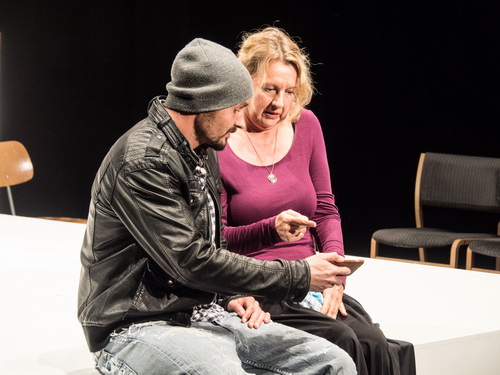 Und so können die heraus­ra­genden Schau­spieler ihre Arbeit fortsetzen. Allen voran Christine Smuda, die als Nurit von der ersten Sekunde eines schnoddrig-verträumten Auftritts bis zum großen Abschluss­mo­nolog begeistert. Jeder, der sie in dieser Rolle erlebt, wird sie ohne Zögern für größere Aufgaben empfehlen. Dass man nach einer solch langen Zeit eine Rolle aus dem Eff-eff beherrscht, ist die eine Seite. Dass man sie dann noch so lustvoll, charis­ma­tisch und frisch inter­pre­tiert die andere. Und der Regisseur, der nach ihrem Monolog nicht nach neuen Rollen für sie sucht, sollte sich Gedanken über seinen Job machen. Kaum weniger überzeugend zeigen sich die übrigen Darsteller. Claudia Lietz spielt die Mutter aller drei Jugend­licher. Und hier wird das Stück richtig stark. Unter­schiede zwischen den Kulturen verwi­schen im Ablösungs­prozess der Pubertät, egal, in welchem Land oder welcher Kultur gerade so puber­tiert wird. Und: die Sorgen aller Mütter dieser Welt sind ähnlich. Wunderbar gemacht. Randolph Herbst spielt mit viel Genuss den Halbstarken Serdat, während Bardo Böhlefeld den eher unsicheren Aron gibt, der sich allzu gern von seinen Hormonen leiten lassen möchte. Dass Bernd Ocker-Hölters in seiner Rolle aus dem Publikum heraus sein verdammtes Maul nicht halten kann, wird ihm als rechtem Queru­lanten schließlich zum Verhängnis.