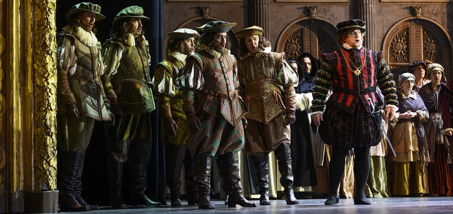 Yolanda Auyanet als Elisabeth ist stimmlich am Premierenabend nicht in Top-Form, lässt aber erkennen, dass sie in den Folgeaufführungen die dramatischen und lyrischen Akzente der Partie perfekt zum Klingen bringen dürfte. Für die gegenüber den oft gespielten Fassungen deutlich umfangreicher angelegte Partie der Eboli findet Mazzonis in Kate Aldrich eine glänzende Interpretin ohne konditionelle Grenzen. Damit bewältigt sie nicht nur die gefürchtete Bravour-Arie, sondern auch das ausgedehnte Duett mit Elisabeth, das Verdi in der Pariser Fassung der Arie vorgeschaltet hat. Ein musikalisch kostbares Duett, das allerdings den dramaturgischen Elan hemmt und von Verdi in den folgenden Fassungen unberücksichtigt blieb. Ebenso wie die umfangreiche Chor-Szene im Finale, in der Verdi eine Melodie in den Mittelpunkt stellt, die er später im Requiem verwendete.