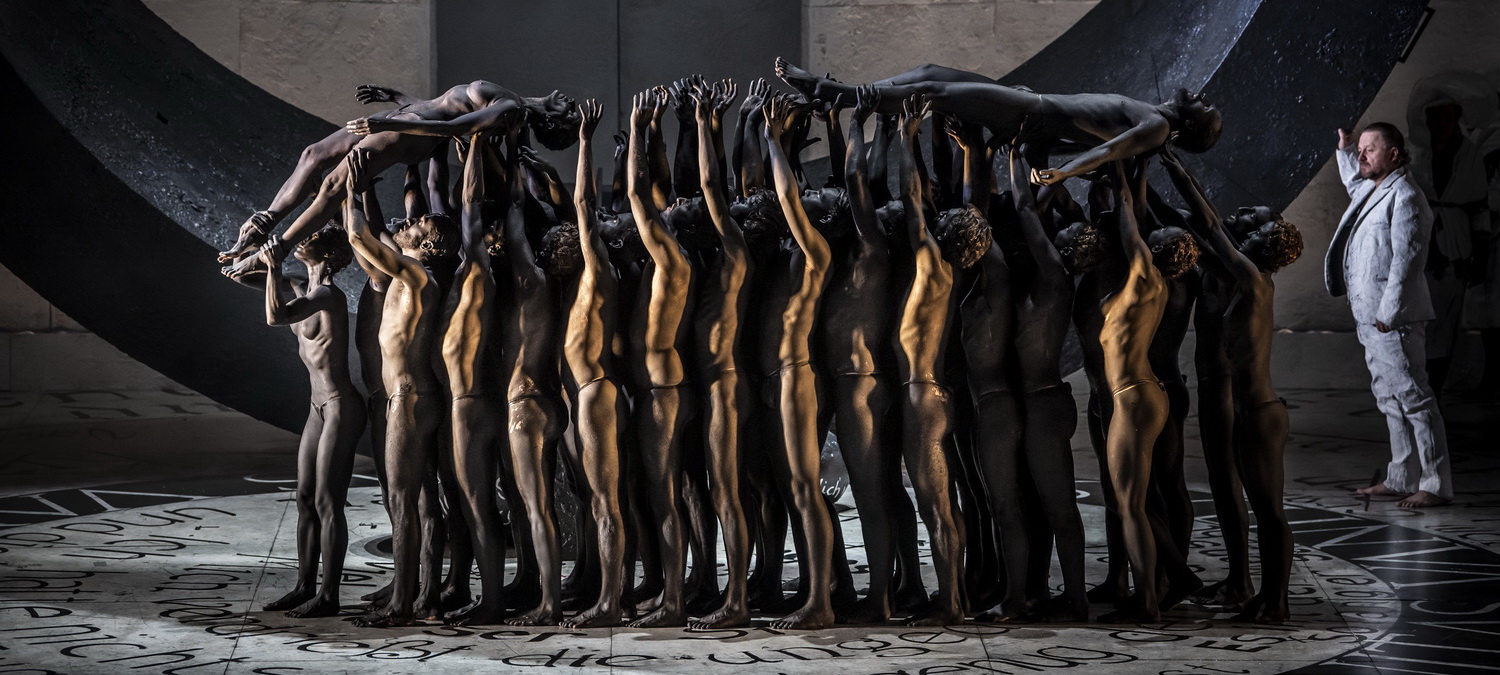 Stefano Poda deckt als Regisseur, Bühnen- und Kostümbildner, Choreograf und Lichtdesigner die komplette szenische Umsetzung in Personalunion ab. Die stärksten Impulse gehen von dem beeindruckenden Bühnenbild aus, einem riesigen, flexibel verschieb- und drehbaren Ring, der sich schnell den vielen Szenen anpassen lässt und einen zügigen Ablauf ohne lähmende Umbaupausen ermöglicht. Mit Ausnahme des Gretchens sind die Charaktere bei Gounod eindimensionaler zugeschnitten als in der Vorlage Goethes, so dass Méphistophélès etwa in der Oper vor allem als Kraftmensch in Erscheinung tritt, ohne die schlangenhaft schillernden Fassetten des Originals zu erreichen. Und Faust agiert wesentlich passiver, was freilich viel Freiräume für schöne Arien bietet. Das alles bedient Poda mit ordentlicher Routine. Das Bemühen um einen dynamisch aktiv agierenden Chor führt mitunter zu skurrilen Einfällen und das mit Sonderapplaus bedachte Ballett in der Walpurgisnacht wirkt etwas plakativ, auch wenn Podas Einfall, die reale Welt in dunkles Schwarz und ausgerechnet das Höllenszenario in leuchtendes Weiß zu tauchen, nicht ohne Reiz ist.