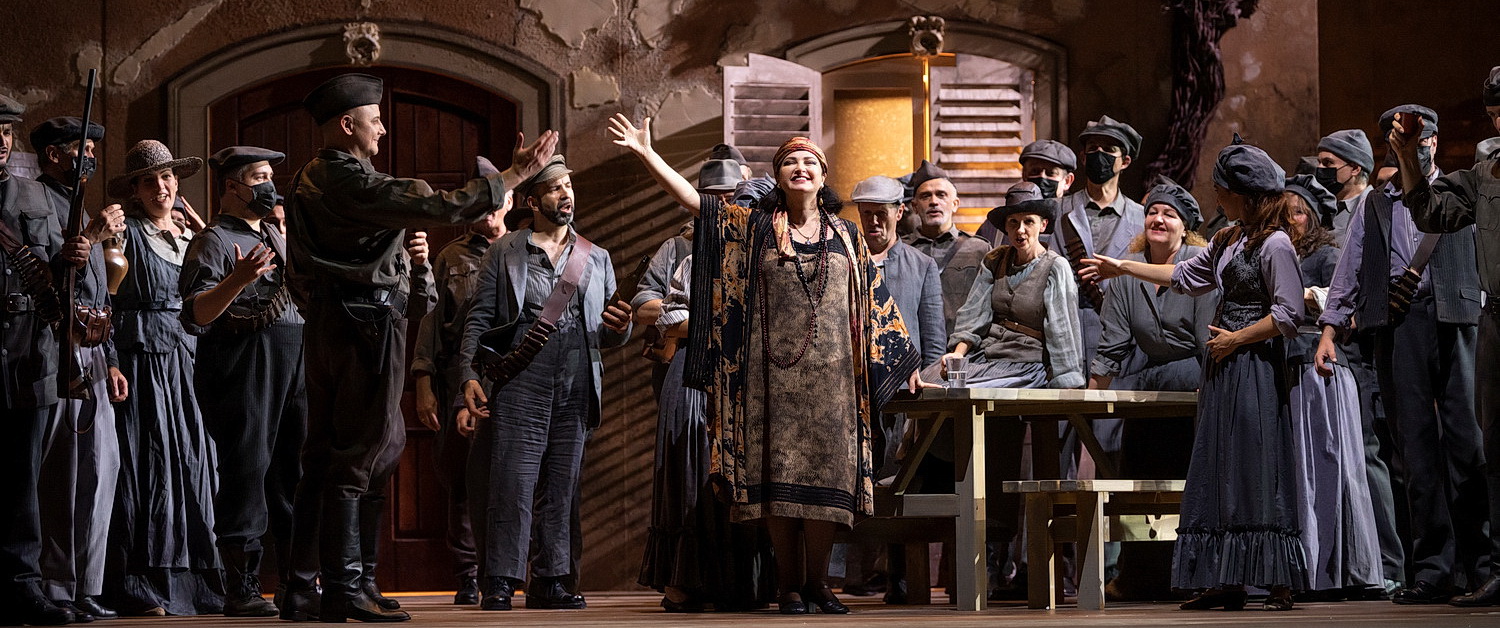 Die vielen Genre-Szenen zwischen Klostermauern, Wirtshäusern und Kriegsschauplätzen werden minutiös ausgeführt. Der latente Rassismus, dem sich der Mestize Don Alvaro von der Familie seiner angebeteten Leonora ausgesetzt sieht, wird allerdings nicht hinterfragt. Man sieht zwar die Spuren des Kriegs in den noblen Kulissen des spanischen Adels: Die von Verdi ironisch überdrehte Kriegsbegeisterung Preziosillas erfährt aber keine Brechung. Auch szenisch hat sich – noch – nichts geändert.