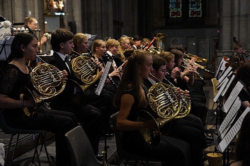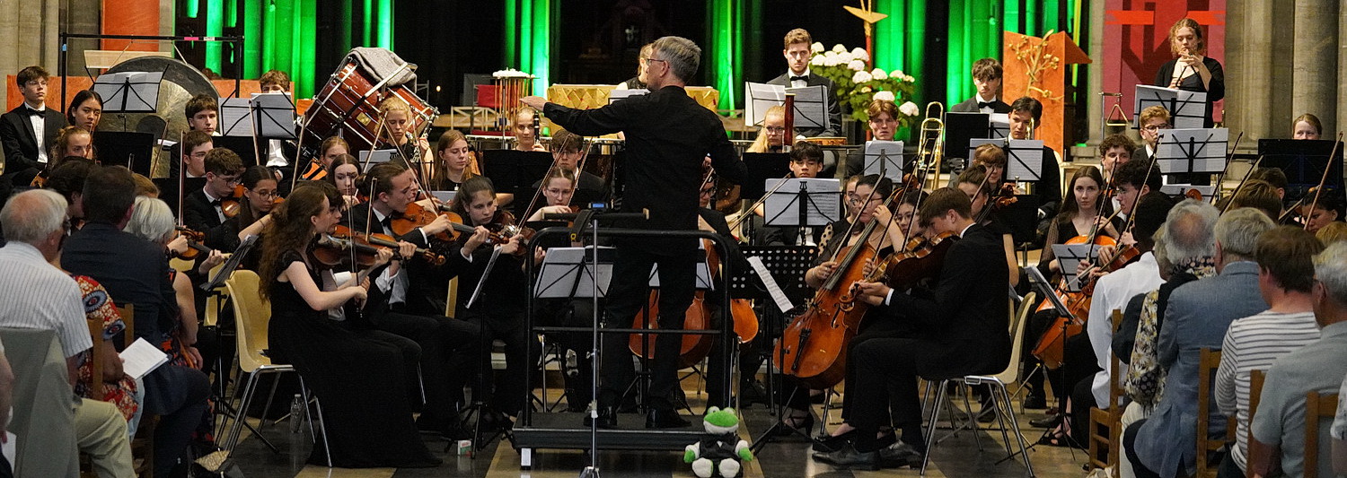 Die Erleichterung ist groß. Pünktlich zu Konzertbeginn sind die Stuhlreihen nahezu vollständig besetzt. Die Öffentlichkeitsarbeit vor Ort hat funktioniert. Und so nehmen auch die Musiker ihre Plätze ein. Lampenfieber ist zumindest nicht erkennbar. Das Programm, das das Landesjugendorchester NRW sich für seinen Aufenthalt in Frankreich und Belgien vorgenommen hat, ist so bekannt wie reizvoll. Auf dem Abendzettel sind die Peer-Gynt-Suiten Nr. 1 und 2 sowie Scheherazade von Nikolaj Rimski-Korsakow vermerkt.