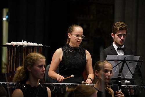 Bei solchem Wiedererkennungswert braucht es keine größeren Anstrengungen, das Publikum für sich einzunehmen. Außerdem zahlen sich jetzt die Bemühungen Tewinkels bezüglich der Akustik aus. Effektvoll, fast schon majestätisch, breitet sich der Klang in der Kathedrale aus. Da wird Tewinkel fast schon übermütig, dirigiert „für die Galerie“. Ja, es wird ein prachtvoller Abend. Das Geigensolo von Raphael Gisbertz in Solveigs Lied mit der Unterstützung von Hannah Breiler an der Harfe wird ein Fest.