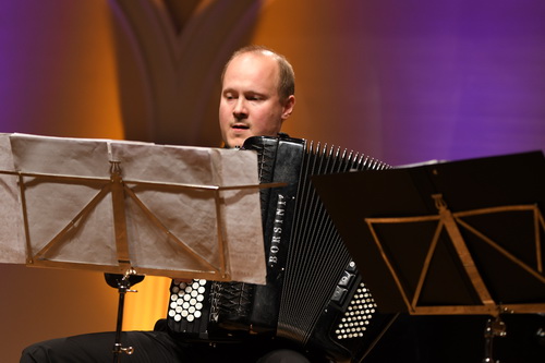 Im dritten Teil des gestrafften Abends, der dann trotzdem mehr als zweieinhalb Stunden dauert, ohne dass es irgendjemand bemerkt, tritt das Trio Neuklang auf. Nachdem sie im vergangenen Jahr Tangos „von Mozart, Brahms und Bach“ präsentiert haben, entführen Nikolaj Abramson an der Klarinette, Arthur Hornig am Cello und Jan Jachmann am Konzert-Akkordeon das Publikum in die Welt der Oper. Der Begriff fake news bekommt hier ein ganz neues Gewicht. Von Opern gibt es hier allenfalls – mitunter kaum erkennbare – Zitate. Und schlaue Menschen hören bei den Anmoderationen ganz schnell weg und genießen die großartigen Arrangements von Abramson als das, was sie sind: eine Mischung aus Tango, Klezmer und Kaffeehausmusik. Im Stück Wagner gibt es den fliegenden Holländer, die Walküre, Rienzi und Tannhäuser in viereinhalb Minuten. Außerhalb der Musikwissenschaft erkennt man möglicherweise den Walkürenritt. Geschenkt. Die Fragestellung für die Musiker in diesem Jahr war: Was würde passieren, wenn der Barbier von Sevilla Ludwig van Beethoven die Haare schneiden würde? Selbstverständlich gibt es keine Antwort. Aber nach fünf Stücken fragt jeder, warum diese Musik schon vorbei ist. „Der Applaus ist ausreichend für eine Zugabe“, zitiert Hornig Loriot, und so gibt es zunächst einen Vivaldi, der es in sich hat, um mit dem Libertango von Piazzolla in einer sehr freien Interpretation abzuschließen.