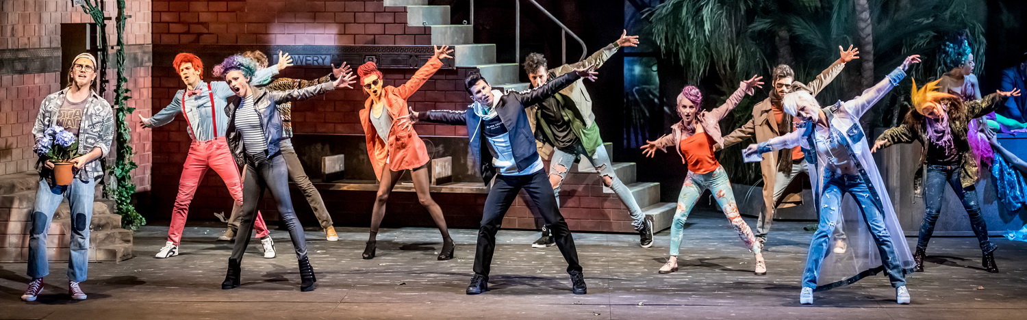 Um dem Geschehen zu einiger Glaubwürdigkeit zu verhelfen, verpackt Regisseur Ulrich Wiggers das Stück in eine Rahmenhandlung. Ein Junge versteckt sich aus Angst vor einem Zahnarztbesuch in einem Gewächshaus, wo er zu träumen beginnt. Doch was für das Kind zum Alp wird, gerät für das Publikum zu einer vor Witz und Fantasie nur so sprühenden Show. Der von Leif-Erik Heine mit liebevollen Details und wild wuchernden Ranken ausgestattete Blumenladen, in dessen Zentrum sich die stetig wachsende Pflanze mit knallroter Blüte und tiefgrünen Blätter befindet, ist die Hauptspielfläche für ein turbulentes, perfekt getimtes Treiben. Flotte Ballettszenen, von Kati Heidebrecht choreografiert, peppen das eigentlich als Kammerspiel konzipierte Musical zusätzlich auf.