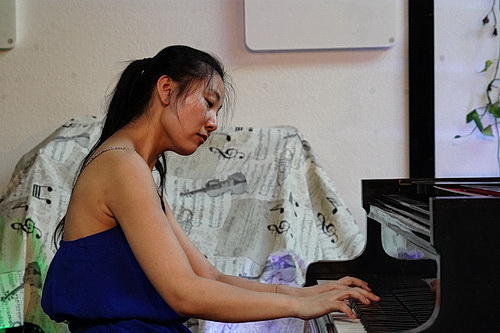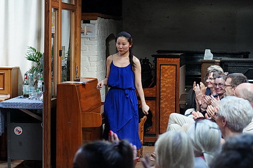 Das gilt auch für einen Freitag­abend in den Sommer­ferien. Selbst die zusätzlich aufge­stellten Stühle sind im Handum­drehen besetzt. Und das kommt nicht von ungefähr. Denn für diesen Abend ist der Auftritt von Dongni Cui angekündigt. Sie wurde in Xi’an, Shaanxi, in der Volks­re­publik China geboren und begann im Alter von fünf Jahren ihre Klavier­aus­bildung an der Musik­schule ihrer Heimat­stadt. Nach ihrem Bache­lor­ab­schluss an der Musik­hoch­schule Peking im Jahr 2008 setzte sie ihr Studium von 2009 bis 2011 an der Staat­lichen Hochschule für Musik Trossingen mit einem Master in „Künst­le­rische Ausbildung Klavier“ fort. Anschließend absol­vierte sie einen weiteren Master im Studi­engang „Klavier-Duo“ und gründete zusammen mit ihrer Duo-Partnerin das Mendon-Klavier-Duo. 2018 schließlich absol­vierte sie ihr Konzert­examen – der höchst­mög­liche Bildungs­ab­schluss bei den Instru­men­ta­listen – an der Robert-Schumann-Hochschule in Düsseldorf, wo sie derzeit als Dozentin arbeitet.