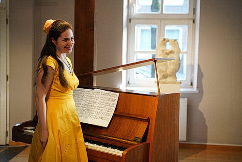 Wie auch immer sie es geschafft haben, erscheinen die beiden Damen in Kleidern, die eigens für diesen Anlass erworben wurden. Porizko in frischem Gelb mit adretter gelber Haarschleife, Somicheva im gleichgeschnittenen rosafarbenen Kleid. Der Frühling kann beginnen. Los geht es mit Robert Schumann. Die Träumerei spielt Porizko noch solo auf dem Klavier, dann stimmt Somicheva mit dem Schneeglöckchen ein. Kurz, aber wunderbar, erklingt Im wunderschönen Monat Mai, ehe Porizko Von fremden Menschen und Ländern anstimmt. Das muss der Zuschauer am Monitor alles nicht wissen. Er braucht keinen Programmzettel. Weil die beiden Musikerinnen mit kurzen Zwischenmoderationen und viel guter Laune durch den Abend geleiten. Ein kurzer Ausflug zu Felix Mendelssohn Bartholdy mit Auf Flügeln des Gesangs und Lied ohne Wörter, das Porizko als Solo präsentiert, fühlt man sich bereits ganz in das Frühlingserwachen, das man so lange vermisst hat, hineingezogen. Das Sahnehäubchen gibt es dann mit Franz Schuberts Frühlingsglaube und Ständchen. Die gute Laune ist inzwischen garantiert. Wer jetzt noch nach dem Frühling sucht, hat den Abend nicht verstanden.