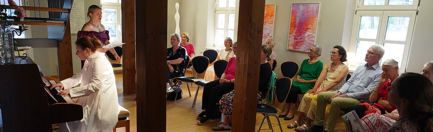 30 Grad im Schatten am Siebenschläfertag. Sollte es wirklich einen richtigen Sommer im Rheinland geben? Wie immer ist nicht alles schwarz oder weiß. Während es in Meerbusch gegen Abend zunehmend schwüler wird, wird aus Detmold schwerstes Gewitter mit Hagelkörnern groß wie Hühnereier und Überschwemmungen gemeldet. In beiden Fällen gibt es wenig Grund, ein klassisches Konzert zu besuchen. Das Publikum von Klassik aber frisch interessiert das nicht die Bohne. Unbeeindruckt erscheinen die Besucher im Alten Küsterhaus, wo gleich beim Empfang schon ausreichend Wasser ausgeschenkt wird, um die doch überwiegend älteren Herrschaften gegen die Hitze zu wappnen.