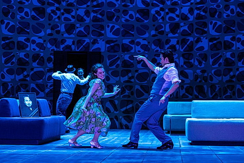 Zu Beginn blickt der Zuschauer auf eine mächtige halbrunde Holzwand, die im Laufe des Stückes mit Hilfe der Drehbühne den Blick auf das Geschehen freigibt oder verwehrt. Sieben Szenen katapultieren den Zuschauer mitten hinein in das vielschichtige Geschehen. Sie wechseln von der Zeit um 1960 zu der um 1990, was dem Zuschauer durch eingeblendete Zeit- und Ortsangaben verdeutlicht wird. Für jede Zeitspanne tritt eine Figur der Helene auf, oft befinden sich beide auf der Bühne, singen im Duett.