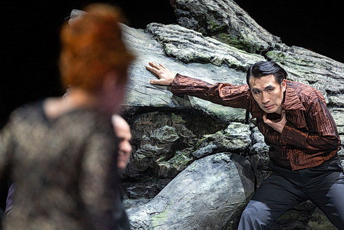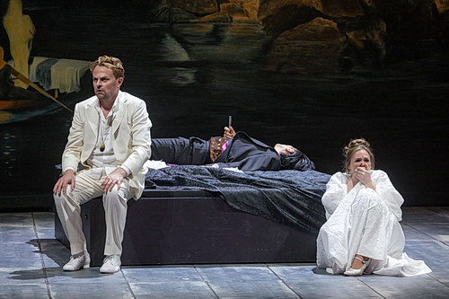 Dass der Abend zumindest musikalisch und sängerisch auf hohem Niveau ist, entschädigt zumindest für die inszenatorischen Unzulänglichkeiten. Herausragend Lena Kutzner in ihrer ersten Spielzeit am Meininger Staatstheater. Als Senta im Fliegenden Holländer hat sie schon ein furioses Debüt gegeben, als Elsa setzt sie noch eins drauf. Sie legt die Rolle mit bewegender Innigkeit, träumerisch und schwärmerisch an, und verkörpert in Spiel und Gesang das Idealbild der reinen und unschuldigen Elsa, ohne dabei naiv zu wirken. Ihr lyrischer und in den Höhen jugendlich-dramatischer Sopran mit einem warmen Timbre ist von einer großen Tragfähigkeit, der weit gesponnene Bögen und leuchtende Höhen mit Leichtigkeit erzeugt, um dann wieder mit wunderbarem Piano zu berühren. Von den reinen, klar tragenden leisen Tönen ihrer Traumerzählung zu Beginn, über die eindringlich-dramatischen Ausbrüche in der Konfrontation mit Ortrud bis hin zur Brautgemachszene, mit den wunderbar ins leicht Dramatische gesteigerten Phrasierungen, beeindruckt sie auf ganzer Linie. Es ist ein Rollendebüt par excellence. Magnus Vigilius als Lohengrin ist erst eine Woche vor der Premiere in die Probenarbeit eingestiegen. Er legt die Partie nicht mit großem Heldengestus an, sondern sehr lyrisch, fast mit tenoralem Schmelz. Sein kräftiges Fundament ist eine sichere Stütze für die Ausbrüche am Ende des zweiten Aufzugs und im großen Duett des Brautgemachs Höchstes Vertrau’n. Dabei entwickelt die Stimme, basierend auf einer warmen Mittellage die nötige Strahlkraft, um auch in den großen Ensembles gehört zu werden. Die Gralserzählung singt Vigilius innig, fast liedhaft und damit besonders berückend. Sein finaler Abschied besticht durch eine große Differenzierung in der Phrasierung und der dynamischen Ausgestaltung.