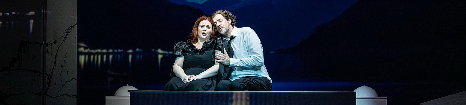 In seiner Handlung in drei Aufzügen erzählt Richard Wagner die tragische Geschichte zweier Liebender, denen ein Zusammensein einzig im Tod vergönnt ist. Der Komponist schrieb seine Oper unter dem Einfluss seiner glühenden, doch unerfüllten Liebe zu Mathilde Wesendonck – so kommt es nicht von ungefähr, dass Wagner mit Tristan und Isolde eines seiner anrührendsten und sinnlichsten Werke schuf. Und was ist nicht alles über dieses Werk, das einst als unaufführbar galt, geschrieben worden? Die Musik mache süchtig, sei sogar gefährlich. Der Dirigent Joseph Keilberth starb 1968 in München während einer Festspielaufführung des Tristans. Es passierte im zweiten Aufzug, nach Tristans Worten: „So stürben wir, um ungetrennt ewig einig ohne End‘, ohn‘ Erwachen …“. Keilberth stürzt wie vom Blitz getroffen zu Boden, bleibt reglos liegen und stirbt wenig später. Exakt an dieser Stelle erlitt 1911 Felix Mottl, auch bekannt durch seine Orchestrierung der Wesendonck-Lieder, einen Herzanfall. Zwölf Tage später erlag er dem Herzleiden. Und Christian Thielemann hat mal eine zwölfjährige Pause vom Tristan gemacht, da er nach eigenen Aussagen das Gefühl hatte, wenn er es zu viel dirigiere, verlöre er sich selbst. Ist Wagners Tristan also gefährlich, macht seine Musik süchtig? Zu einem gewissen Maß kann man das in der Meininger Neuinszenierung fühlen, was die Musik und Handlung mit einem machen können. Regisseurin Verena Stoiber, die am Meininger Staatstheater schon Salome inszeniert und vor einigen Jahren ein vielbeachtetes Rheingold in Chemnitz auf die Bühne gebracht hat, wählt mit ihrem psychodelischen Ansatz eine Realitätsflucht in durch Videoinstallationen großartig präsentierte Traumwelten, die wie ein Tsunami über die Bühne fegen und den Zuschauer in den Bann ziehen.