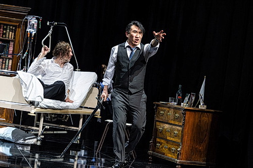 GMD Killian Farrell am Pult der Meininger Hofkapelle spielt einen dynamischen und wuchtigen Tristan, manchmal fast an der oberen Grenze der Lautstärke, aber immer mit dem Gefühl für den Moment. Berückend sind die symphonischen Elemente wie das Vorspiel zum ersten Aufzug, das filigran und voller Emotion aus dem Graben ertönt, sowie der Beginn des dritten Aufzuges mit dem Englischhorn-Solo. Ein Orchestermusiker spielt das Solo auf offener Bühne und bekommt zum Schluss dafür zurecht großen Applaus. Der berühmte dissonante Tristan-Akkord weckt die Hoffnung auf eine verströmende Tonsprache, die so charakteristisch für das Werk ist. Es entstehen große Bilder, rauschhafte Klänge der Unendlichkeit, die die überwältigenden Gefühle der kaum noch aktiv handelnden Figuren deutlich machen, grandios unterstützt durch die Videoprojektionen. Es ist insgesamt wieder eine überzeugende Leistung der Meininger Hofkapelle und von Farrell, der zu Beginn des zweiten und dritten Aufzugs vom Publikum schon gefeiert wird.