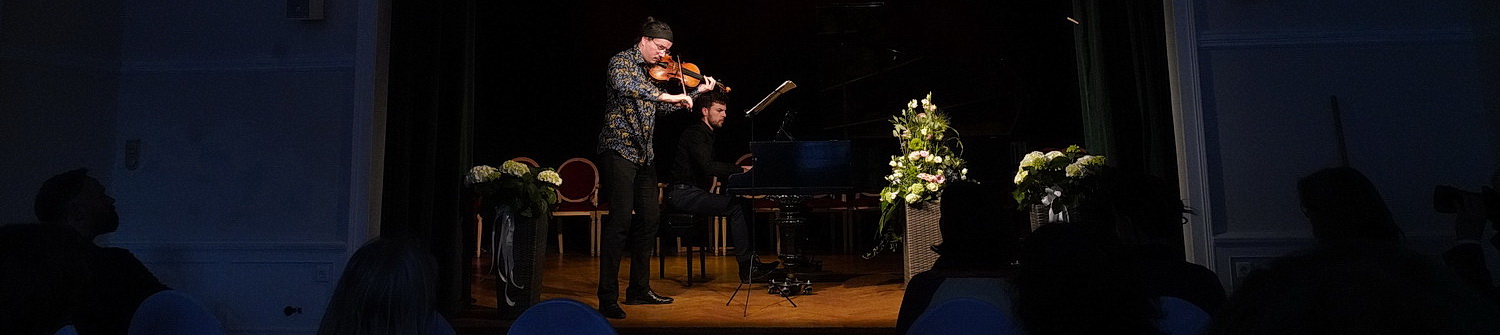Vor sieben Jahren reiste der in Frankreich geborene Geiger Jean-Samuel Bez zu einem Festival nach Kanada und lernte dort den Pianisten Jean-Luc Therrien kennen. Ein gemeinsames musikalisches Grundverständnis mag sich zum Teil auch daraus ergeben haben, dass beide in Österreich studiert haben, Bez in Wien und Therrien in Salzburg. So oder so, ihre Begegnung war die Geburtsstunde des J2-Duos. Kurze Zeit später gewannen sie erste internationale Wettbewerbe und touren seitdem gemeinsam durch Europa und Kanada. Wer auch nur die geringste Ahnung von Tourneen hat, die nicht von großen Managements organisiert werden, weiß, welche Kärrnerarbeit dahintersteckt. Selbst, wenn man sich längst einen Namen erarbeitet hat, gibt es kaum einen, der auf einen Anruf oder eine Mail wartet, geschweige denn, sie mit einer fröhlichen Einladung beantwortet. Bez und Therrien lassen sich davon nicht abschrecken. Und so sind sie gerade wieder auf einer Tournee durch Europa – 25 Aufführungen stehen in 30 Tagen an. Eine davon führt sie nach Mettmann in die Kulturvilla. Seit der Pandemie haben immer mehr Spielstätten mit einem Phänomen zu kämpfen, dass ihnen die Arbeit über Gebühr erschwert. Eintrittskarten werden nicht mehr im Voraus gekauft, sondern spontan an der Abendkasse erworben. Drei Tage vor dem geplanten Auftritt des franko-kanadischen Duos sind gerade mal zwölf Karten verkauft. Soll man die Aufführung absagen? Das Duo sagt nein. Und Constanze Backes und Bodo Herlyn, die die Kulturvilla seit vielen Jahren erfolgreich betreiben, sagen: Gut, dann findet der Abend statt.