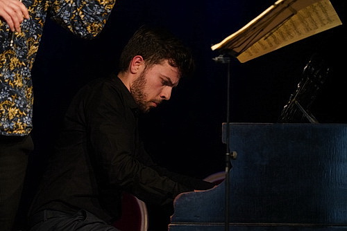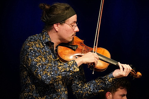 Die Freude ist groß. 35 Besucher nehmen am Sonntagabend im Konzertsaal der Kulturvilla Platz, um ein wirklich ungewöhnliches Programm zu erleben. Nach einer freundlichen Begrüßung des Publikums kündigen die beiden gleich mal eine Uraufführung eines Werks an, das eigens für sie geschrieben wurde. Alithéa Ripoll wurde in Liège geboren, begann mit 17 Jahren ihr Kompositionsstudium und ist seitdem gut im Geschäft. Von ihr stammt Estuaire de venelles – Mündung der Gassen – aus diesem Jahr. Beginnend mit kurzen Strichen, die von tropfenden Tastenklängen verfolgt werden, steigert sich die Geige in nahezu alptraumhafte Klänge, die auf dem Klavier in immer düsteren Läufen Begleitung finden, geraten beide allmählich in einen maschinenklangähnlichen Verlauf, der nichts Gutes verheißt, ehe das Stück mit einem erstaunten Aufwachen abrupt endet. Aufwühlend, furios, aber nachvollziehbar für das Publikum, das von Bez abschließend getröstet wird. Es sei ja nur neue Musik. Ja, die beiden verstehen es, die Sympathien des Publikums auf sich zu vereinigen.