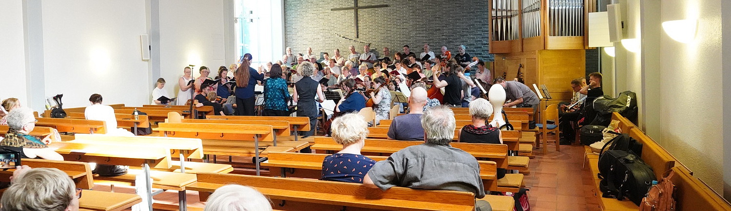 Sie versammelte den Projektchor der Evangelischen Kirchengemeinde Großheide, den Projektchor Klassik aber frisch, die Kantorei an der Lutherkirche Düsseldorf und den Böhlen-Konzertchor, stellte ein eigenes Orchester zusammen und engagierte die Solisten, um das Oratorium aufzuführen. Ebenfalls eine Mammutaufgabe, Monate verbrachte das Ensemble mit Proben, ehe es am 15. Juni in der Düsseldorfer Lutherkirche die erste Aufführung absolvierte. Jetzt steht die zweite Aufführung in Mönchengladbach an.