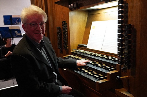 Wenn die Kirche am Sonntag­nach­mittag trotzdem sehr gut besucht ist, mag das am Vertrauen der Besucher in den Kantor Reinhold Richter liegen, der sie musika­lisch noch nie enttäuscht hat, auch wenn nicht immer nur der Kanon auf dem Programm­zettel auftaucht. Seit 1982 kümmert der studierte Kirchen­mu­siker und Organist sich als Kantor um die musika­li­schen Belange der Kirche. Heute hat Richter sich für das festliche Konzert für Orgel und Orchester Hilfe geholt. Ihm zur Seite steht – nicht zum ersten Mal – die Camerata Gladbach. 2014 wurde das Kammer­or­chester in offener Formation von Johanna Brinkmann und Tanja Chere­pashchuk gegründet, das sich zu großen Teilen aus Mitgliedern der Nieder­rhei­ni­schen Sinfo­niker zusammensetzt.