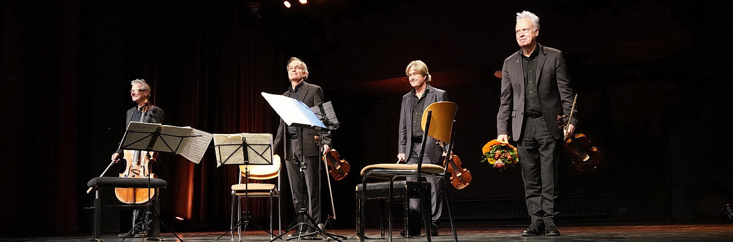 Das Auryn-Quartett hat für diese Abschiedstour, die es bis Ende Februar kommenden Jahres durch ganz Deutschland führt – hier gibt es die Auftrittstermine – ein extrem klassisches Programm ausgewählt. Beginnend mit der Kleinen Nachtmusik von Wolfgang Amadeus Mozart, die um den legendären fehlenden zweiten Satz ergänzt wird, gibt es Ludwig van Beethovens Quartetto serioso und, nach einer Pause, Franz Schuberts Der Tod und das Mädchen. Es braucht hier kein Wort über die exzellente Spielweise des Quartetts verloren zu werden. Vier Jahrzehnte hält man medioker nicht durch. Und so darf sich das Publikum zurücklehnen und vollendeter Interpretation voller Genuss lauschen. Komplett entspannt können sich die Musiker einem fachkundigen Publikum überlassen, das die Leistung zu würdigen weiß.
