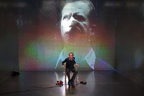 Lust an der Übertreibung im Spiel zeigt auch Felix Römer, der den Konrad bereits im Berlin gegeben hat. Expressiv bis an die Grenze des Erträglichen walzt der Schauspieler das Drama vor dem Publikum aus. Das gelingt ihm glaubhaft und vortrefflich. Komisch ist da nichts mehr. Und gruselig wird es gar, wenn Römer in den Projektionen sehr an Jack Nicholson in Shining erinnert. Die unnötigen Sprachübungen mit dem Publikum, die das Stück auch noch auf anderthalb Stunden statt der angekündigten 75 Minuten ausweiten, können der Atmosphäre nichts anhaben. Sehr viel eindrucksvoller allerdings sind die musikalischen Einspielungen von der Festplatte. Mit dem fünften aus den sechs Streichquartetten von Béla Bartók gelingt es wunderbar, dem überdrehten Spiel Pausen zu gönnen und gleichzeitig, die unheilige Stimmung zu schüren.