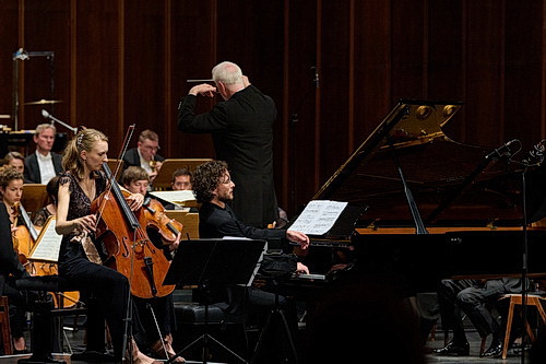Die beiden berühmten Solisten, Cellistin Marie-Elisabeth Hecker und Pianist Martin Helmchen, meistern ihre teils hochgradig schwer spielbaren Parts bravourös, als wären rasend schnelle, sich dynamisch ändernde, auf dem gesamten Griffbrett beziehungsweise der ganzen Tastatur verteilten Flageoletts, Pizzicati, Läufe oder Arpeggien eine leichte Selbstverständlichkeit. Auch das Kölner Kammerorchester zeigt sich unter der umsichtigen und präzisen Leitung von Christoph Poppen ebenfalls bestens präpariert, spielt sehr sauber selbst komplexe Strukturen klar durchhörbar. Bestens kommunizieren Hecker, Helmchen und das Orchester miteinander, fügen somit die drei musikalischen Ebenen trotz ihrer Mannigfaltigkeit zu einem harmonischen Ganzen.