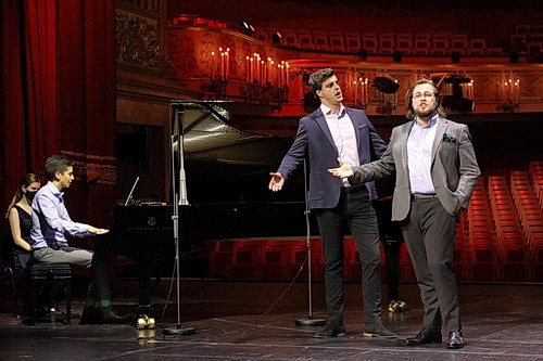 Es beginnt mit Ausschnitten aus Mozarts La Clemenza di Tito, und das erste Duett Come ti piace imponi hat diesem Konzert auch den Namen gegeben. Die Sopranistin Eliza Boom und die Mezzosopranistin Yajie Zhang dürfen hier das Eis brechen, was sie auf berückende Art tun. Der Tenor James Ley folgt mit der lyrischen Arie Se all’impero und lässt mit dem Schönklang seiner Stimme aufhorchen. Vengo … aspettate … Sesto! Das Terzett mit Boom und Zhang wird durch den Bassbariton Christian Valle komplettiert und mit dramatischen Steigerungen dargeboten, bevor die Sopranistin Sarah Gilford mit S’altro che lacrime ihr Können zeigen darf. Ganz zart und lyrisch legt sie diese Arie an. Zum Finale dieses ersten Konzertteils Tu, è ver, m’assolvi kommen alle Beteiligten zusammen, ergänzt um die Sopranistin Juliana Zara. Beeindruckend die ausgeprägte Harmonie der Stimmen in diesem Finale, das wie die Stücke zuvor elegant von Michael Pandya am Klavier begleitet wurde.