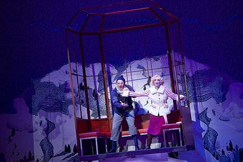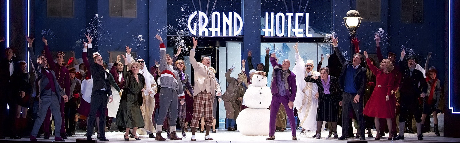 Es ist zu Beginn der Empfangssalon im Hause Tobler, dann das Foyer des Grand Hotel und gedreht der Eingangsbereich vor dem Hotel, und last but not least eine stählerne Gondel hoch zum Wolkenstein, die auch noch als Faradayscher Käfig herhalten muss. Die passenden bunten Kostüme stammen von Dagmar Morell. Dass die einzelnen Gesangsnummern auch zünden und kein Leerlauf entsteht, dafür sorgt die spritzige Choreografie von Adam Cooper mit einem Stepptanz auf Skiern als Höhepunkt. Michael Heidinger hat die ganze Szenerie gemeinsam mit Köpplinger ins rechte Licht gesetzt.