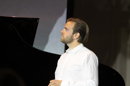 Zuerst aber wird den Besuchern des Max-Joseph-Saals der Münchner Residenz ein neues Raumgefühl vermittelt. In der Mitte des klassischen Konzertsaales steht auf einem Podest der Flügel, ein paar Sitzreihen mit Stühlen sind rundherum angeordnet. Dezente Spots in Rot tauchen die prächtigen Kristalllüster in milden Schimmer. Sanfte, elektronische Sphärenmusik schwebt gedimmt durch die Luft, zwei Videoleinwände verdecken teilweise den Blick auf den DJ und seine Mischpulte. Das Publikum verteilt sich locker im Raum, steht, sitzt am Boden oder auf einem der Stühle. Die Hintergrundmusik erstirbt, und die Künstler treten auf das Podest. Die Sopranistin Alexandra Flood ist kurzfristig eingesprungen und vollführt eine sehr innige, technisch perfekte Interpretation verschiedener Lieder des zeitgenössischen Komponisten Jacques Hétu. Im Anschluss bannt Matthias Winckhler mit sonorem, vollmundigem Bariton mit Liedern nach Joseph von Eichendorff von Robert Schumann. Auf den Leinwänden werden Videoinstallationen projiziert, teils in bewegten Bildern, die versuchen, die Stimmung der Lieder auch in optischen Effekten umzusetzen. Diese Kombination wird in letzter Zeit immer wieder angeboten, über die Wirkung und künstlerische Aussagekraft werden viele Diskussionen geführt. Fakt ist, dass verschiedene Zuschauergruppen dem gestalterischen Konzept zusprechen. Die Musik und künstlerische Werkinterpretation geraten in den Hintergrund, werden zur Begleitmusik des optischen Reizes, das Konzert wird zum Event.