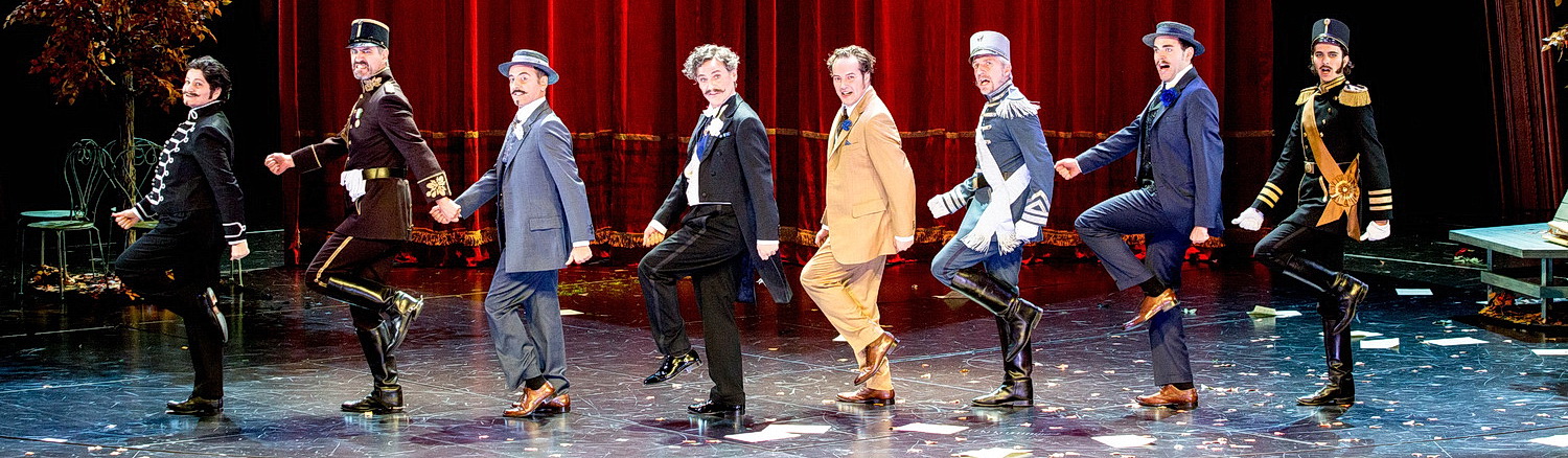 Jeremy Boulton als Vicomte Cascada und Juan Carlos Falcón als Raoul de Saint-Brioche fügen sich herrlich komisch ein genauso wie Lukas Enoch Lemcke als Bogdanowitsch und Frank Berg als cholerischer und ständig mit einer Pistole herumfuchtelnder Kromow. Ihnen zur Seite stehen Marianne Larsen und Ann-Kathrin Naidu als graziöse und kokettierende Ehefrauen. Eine Marke für sich ist Sigrid Hauser, die den Kanzlisten Njegus mit scharfsinnigem und spitzzüngigem Humor verkörpert und am Schluss für den ergreifenden Moment der Stille sorgt. Für Gänsehaut sorgt der Auftritt der mittlerweile 80-jährigen Gisela Ehrensperger, Ehrenmitglied des Staatstheaters am Gärtnerplatz, als Praskowia im Rollstuhl, unterstützt von Holger Ohlmann als Pritschitsch, selbst auch schon eine Institution am Haus. Star des Abends ist zweifellos der Tänzer Joel Distefano in der omnipräsenten Figur des Todes, der in dieser Rolle ein großartiges Debüt gibt.
