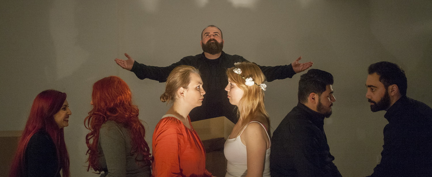 Meeresrauschen eröffnet den Abend, meditierend sitzt der Prophet Al Mustafa am Meer und wartet auf ein Schiff für seine Flucht aus Syrien. Freunde gesellen sich zu ihm, und der traurige Anlass wird zu einer munteren, freundschaftlichen Abschiedsfeier. Der Wunsch nach einer letzten Erzählung durch den Propheten über die Liebe und Abschied wird laut. Passend wählt er das Märchen von Orpheus und Eurydike, arbeitet aber die traurige Realität ihrer Umgebung ein. Aus dem Freundeskreis schälen sich Cornelia Lanz als Orfeo und Sela Bieni als Eurydike heraus, werden in deren Rollenkostüme gesteckt und so wird eine eigene Erzählebene geschaffen. Eurydike verlässt Orfeo ohne Schlangenbiss, um ihre Existenzkrise zu lösen, verfällt in religiösen Wahn und schließt sich einem Führer des so genannten Islamischen Staates an. Orfeo wird von Göttern zur und auf der Suche geleitet, findet seine Geliebte von ihren Peinigern eingewickelt wieder. Auf der Flucht aus dem brutalen Götterstaat verleitet Eurydike ihren Geliebten, die göttliche Auflage zu brechen und ihr einen Blick zuzuwerfen. „Blicke sind die tödlichen Pfeile des Teufels“ heißt es hier so treffend im Libretto, und Eurydike wird vor den Augen Orfeos mit der Pistole hingerichtet. Die Erzählebene bricht ab, und der Prophet besteigt sein rettendes Schiff, nicht, ohne seine Rückkehr zu versprechen.