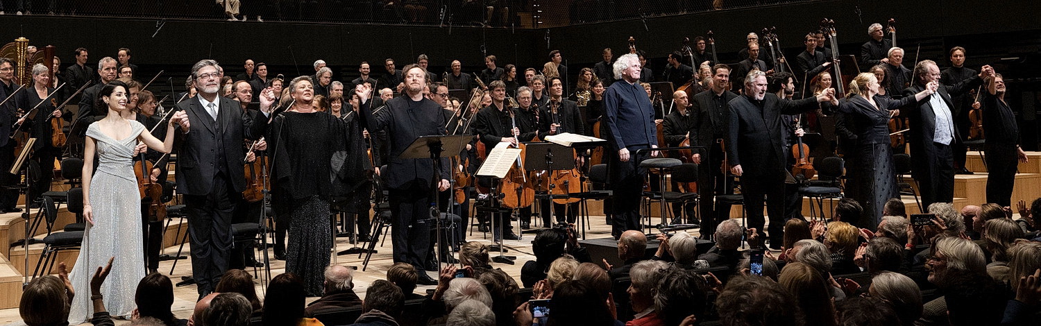 Der erste Grund ist Dirigent Simon Rattle. Ab der kommenden Saison wird Rattle ja bekanntermaßen Chefdirigent des Symphonieorchesters des Bayerischen Rundfunks. Es hat lange gedauert, bis das Orchester sich nach dem Tod seines langjährigen Chefdirigenten Mariss Jansons am 1. Dezember 2019 für einen Nachfolger entschieden hatte. Nun ist Rattle kein Unbekannter in München, bereits 2015 hat er mit dem Orchester das Rheingold und 2019 die Walküre ebenfalls konzertant auf CD eingespielt, beide Werke wurden im Herkulessaal der Münchner Residenz aufgeführt. Nun, weitere vier Jahre später, ist Rattle zurück in München, und zwar das einzige Mal in dieser Spielzeit vor seinem Antritt als Chefdirigent. Und dass sowohl das Orchester als auch das Publikum glücklich über diese Wahl sind, ist den ganzen Abend über zu spüren und am Schluss auch lautstark zu vernehmen.