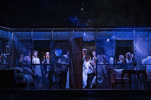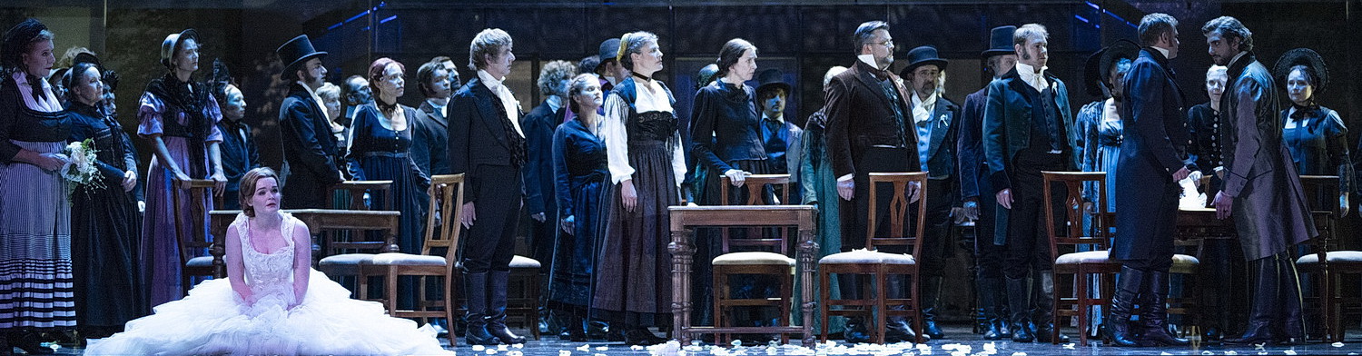 Es ist eine klassische Inszenierung im Biedermeier-Stil, die Regisseur Michael Sturminger da präsentiert, mit scheinbar netten und ganz adrett gekleideten Dorfbewohnern. Ein gläserner Schaukasten wandelt sich auf der Bühne in den jeweiligen häuslichen Raum und ermöglicht so vielfältige Einblicke in das Geschehen, bei dem der spielfreudige Chor eine ebenso große Rolle spielt wie die Solisten. Bühnenbild und Kostüme stammen von Andreas Donhauser und Renate Martin. Und in das Idyll passen die Videoprojektionen von Meike Ebert und Raphael Kurig, mit Berggipfeln, grünen Wiesen und Wäldern und einem plätschernden Bach im Hintergrund. Heile Welt pur, wie aus einem alten Werbeprospekt für die Schweiz. Doch natürlich stecken hinter dem Idyll auch Abgründe menschlicher Seelen, die Sturminger in seiner hochromantischen Version von Bellinis Sonnambula aber nur andeutet. Das Seelendrama um die Schlafwandlerin Amina, ihre vermeintliche Untreue, die Intrigen der unglücklichen Lisa, die überzogene Eifersucht von Elvino, die hochnoble Attitüde des Grafen Rodolfo und eine überneugierige Dorfbevölkerung, das alles zeichnet Sturminger in Pastelltönen, ohne ganz tief in das Drama einzutauchen. Und daher steht an diesem Abend der Gesang im Vordergrund, und der überstrahlt alles biedere in Bühnenbild und Kostümen.