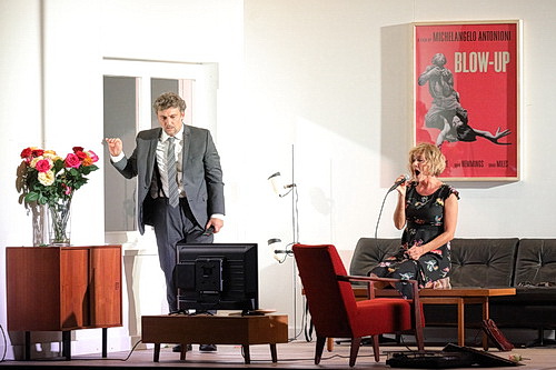 In der Eröffnungsproduktion der neuen Saison der Bayrischen Staatsoper mit Erich Wolfgang Korngolds Die tote Stadt gelingt es dem Regisseur – eine Überarbeitung seiner Inszenierung aus 2016 vom Theater Basel – genau dieses Changieren zwischen Realität und Wahnvorstellungen packend zu zeigen. Stone, der mit Aribert Reimanns Lear 2017 und Luigi Cherubinis Médée 2019 bei den Salzburger Festspielen internationale Anerkennung erlangte, zeigt dabei weniger ein morbides Brügge als einen thrillerhaften Albtraum. Dabei zerbrechen oder verschieben sich immer wieder die Räume des Bungalows aus den 1960-er Jahren, sind plötzlich an anderer Stelle oder gar einen Stock höher. Türen führen ins Nichts oder sind auf einmal zugemauert, Räume nicht mehr erreichbar. Gleich gekleidete Kinder – die Kostüme kreierte Mel Page – tollen im Haus herum und formieren sich zu einer gespenstisch wirkenden Prozession. Beim Durchschreiten der Räume auf der viel benutzten Drehbühne, wo Filmplakate von Michelangelo Antonionis Blow up und Jean-Luc Godards Pierrots le fou an den Wänden hängen, begegnet Paul zahlreichen Doubles von Marie respektive Marietta und von sich selbst. Mag das eine oder andere vielleicht doch etwas plakativ wirken, denn eigentlich ist das Werk viel symbolistischer und abgründiger angelegt, so packt diese Inszenierung mit mitreißender detaillierter, ausgefeilter Personenführung insgesamt.